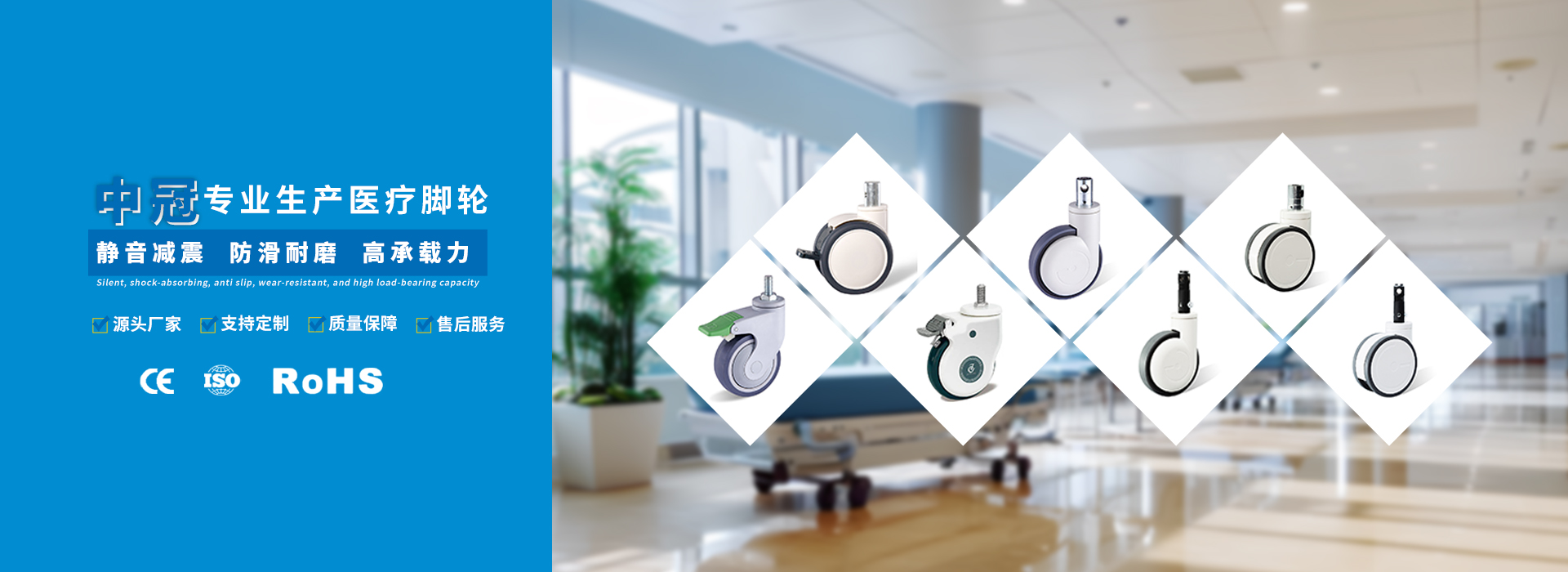 無錫市中冠醫(yī)療設(shè)備有限公司無錫市中冠醫(yī)療設(shè)備有限公司(簡(jiǎn)稱中冠腳輪)是中國醫(yī)用腳輪專業(yè)制造商,公司成立于2009年,是一家專注于醫(yī)用腳輪的創(chuàng)新、研發(fā)、制造、銷售和服務(wù)為一體的高新技術(shù)企業(yè)?,F(xiàn)已形成覆蓋醫(yī)用腳輪市場(chǎng)的多個(gè)系列數(shù)百個(gè)品種的產(chǎn)品線,已成為中國具有規(guī)模并擁有多項(xiàng)自主知識(shí)產(chǎn)權(quán)的醫(yī)用腳輪創(chuàng)新型企業(yè)。